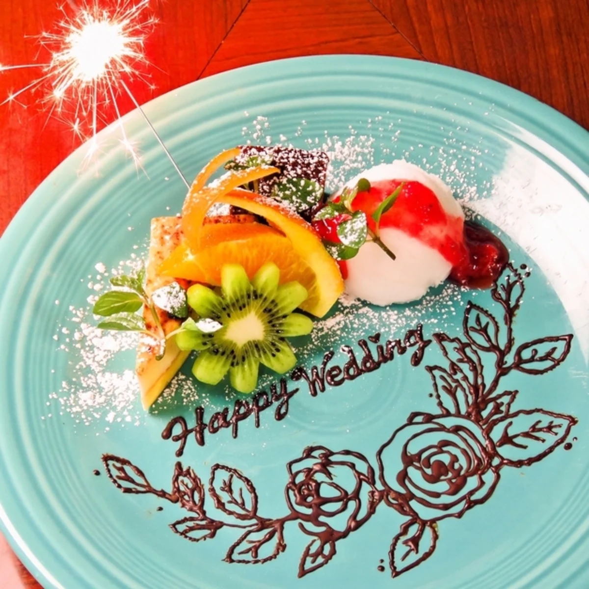 さらに、お食事と共にご用意するのは、ビールやワイン、カクテル等50種以上のドリンクが楽しめる2時間の飲み放題。お食事のご歓談の際にご賞味ください。また、食後にはメッセージプレート付きのデザートで、心からの言葉を伝えることができます。
