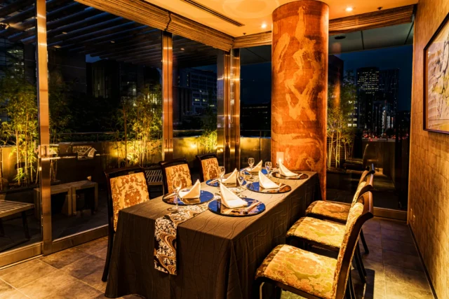 ご用意している座席は開放感があり、景色や煌めく夜景を楽しめるテラス席や、落ち着いた雰囲気のテーブル席を完備。