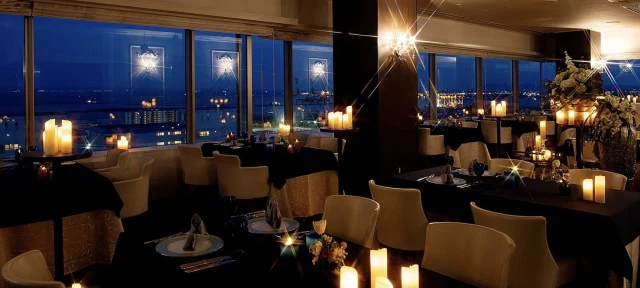 「スマイリーネプチューン」はホテルプラザ神戸の最上階に位置するフレンチレストラン。地産地消にこだわった厳選食材を堪能できるお料理の数々は目にも美しく、一度食べたら忘れられない美味しさです。伝統的なフランス料理に和のエッセンスを取り入れた“イノベーティブフレンチ”を、特等席でお楽しみください。落ち着きのある店内は居心地が良く、大きな窓からは眼下に広がる神戸の港町と海、どこまでも高く広がる空の大パノラマを楽しめます。美しい非日常空間は、記念日デートやプロポーズシーン、とっておきの女子会にぴったり。息を呑むような眺望と共に、記憶に残る美食のひとときをお過ごしください。