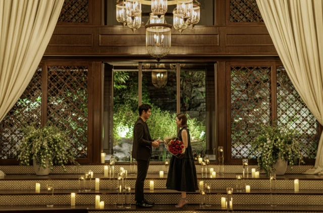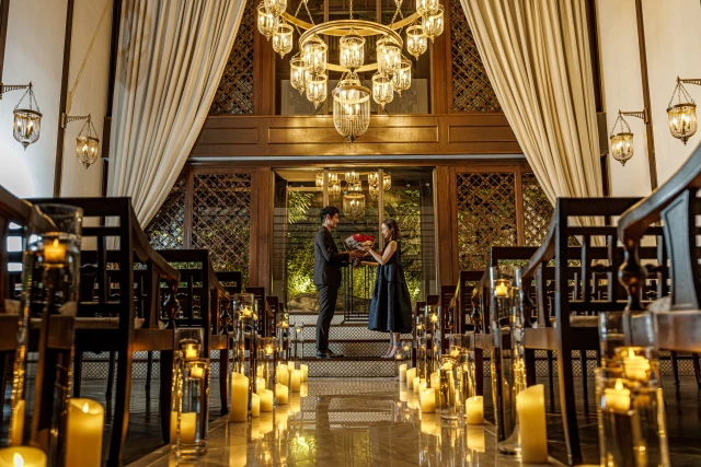 神聖なチャペルでバラと共にロマンティックなプロポーズを