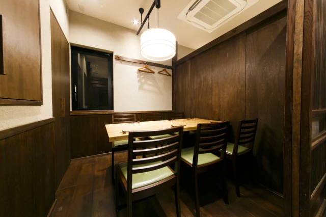 和の趣に満ちた民芸調の個室や、料理人の技を間近に感じられるカウンター席や個室で、大切な記念日やお祝いにふさわしい上質なひとときをお過ごしください