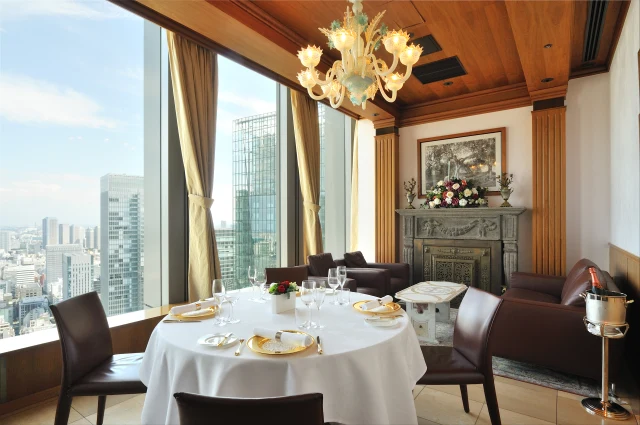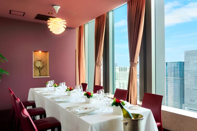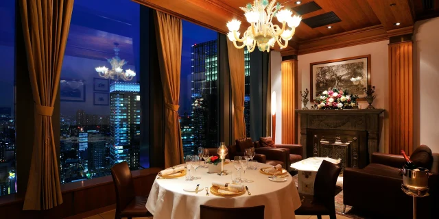 またメイン・ダイニング・ルームからは東京ドームシティ、スカイツリーと佃島界隈、そして東京湾の絶景を眺めることができます。夜には、丸の内と隅田川の高層ビル群の灯が幻想的な夜景をもたらしてくれるので、大切な記念日にも最適なレストランです。