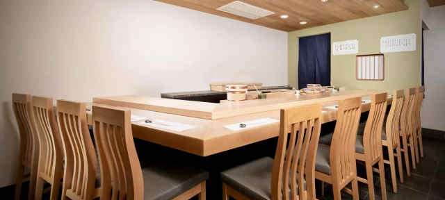 九品仏駅徒歩3分、本格江戸前寿司を楽しめる名店「三代目だるま鮨自由が丘店」。大人の隠れ家で贅を尽くす、至福のひとときを心ゆくまでお過ごしください。「三代目だるま鮨自由が丘店」の店内には洗練された落ち着きある和の空間が広がります。都会の喧騒を忘れさせる上質空間はまさに大人の隠れ家。とっておきの記念日や、ご家族様と集うお祝いシーン、大切なゲストをお連れするビジネスシーンの会食にうってつけです。カウンター席では研鑽を積んだ職人の手捌きを間近に感じながらお食事をお楽しみいただけます。旬の厳選食材と職人の技が織りなす至高の逸品が一口ごとに感動をもたらし、記憶に残る感動の食体験になること間違いなしです。特別な日に相応しい、素敵な時間を是非「三代目だるま鮨自由が丘店」でお寛ぎください。