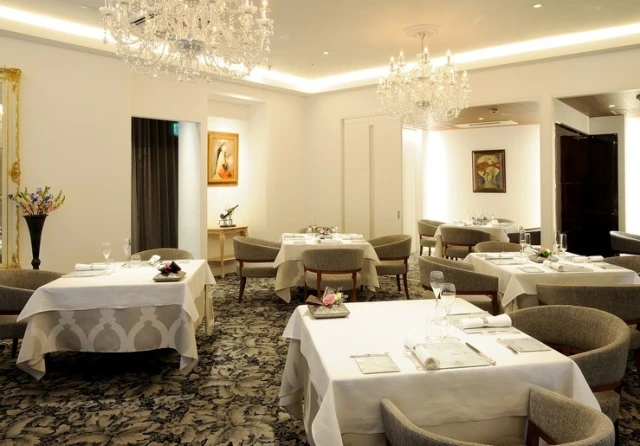 スワロフスキーのシャンデリアが輝き、TYLEK画伯の絵画が飾られた店内は、ヨーロピアンモダンを基調とした落ち着いた雰囲気。使用するカトラリーやアシェットにもこだわっております。
