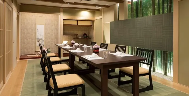四季折々の表情を見せる1500坪の日本庭園に面する「日本料理 季京」。ロイヤルガーデンパレス柏日本閣内で、季節感あふれる日本料理をご提供しております。 使用する食材は、料理長自らが厳選。春夏秋冬の魅力をつめ込んだ味わい豊かな一品一品が、お祝いの席に華を添えます。 伝統を感じさせる本暖簾をくぐった先には、琉球畳を敷いた和室4部屋を完備。美しいお庭や池などをご覧いただける、贅沢なプライベート空間もご用意しております。