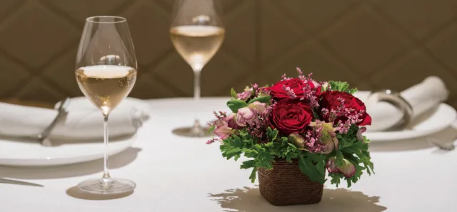 シェフとの会話を楽しめるカウンター席「ワインバル」、オープンキッチンを眺めながら優雅に食事を楽しめるテーブル席、慶事やお集まり事に最適な個室など、用途にあわせた上質な空間を提供しています。