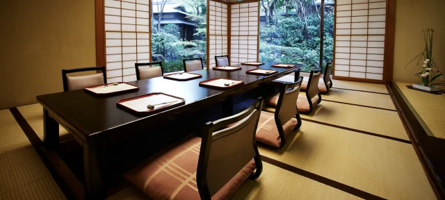 「源氏香」は水天宮前駅直結のロイヤルパークホテル5階に位置する、日本料理店です。美しい日本庭園を臨む店内は落ち着きがあり、大切な記念日やご両家のお顔合わせなどの特別な日に最適。上質なおもてなしと共に、厳選食材を使用した極上の会席料理を心ゆくまでご堪能ください。目にも美しいお料理の数々は季節ごとのしつらえで彩られ、五感を刺激する四季折々の逸品を存分にお楽しみいただけます。美しい和の風情を随所に感じられる「源氏香」で、特別な日にふさわしい贅沢な時間をお過ごしください。