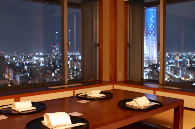 プロポーズ懐石・会席東京スカイツリー景色サプライズ高層階絶景プロポーズプランナー付きメッセージカード追加可お祝いアイテム追加可夜景個室