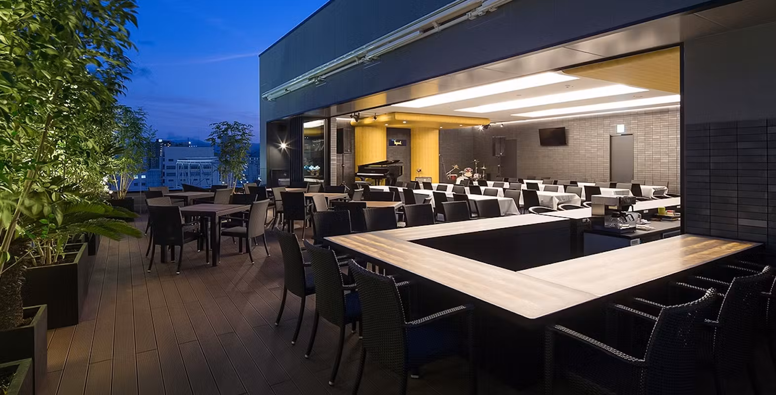 贅沢なひとときを過ごすなら「Live & Grill beyond」。JR小倉駅徒歩1分の好立地に広がる開放的な空間では、薪焼きの肉料理や魚料理が五感を満たします。ジャズの生演奏をBGMに、夜景が広がるテラス席、落ち着いた個室、キャリア60年にも及ぶバーテンダーが腕を振るうバーカウンターなど、多彩なシーンに応じた席をご用意。クラフトビールやワインとのマリアージュも格別です。美食と音楽に包まれる、至福の時間をぜひご堪能ください。