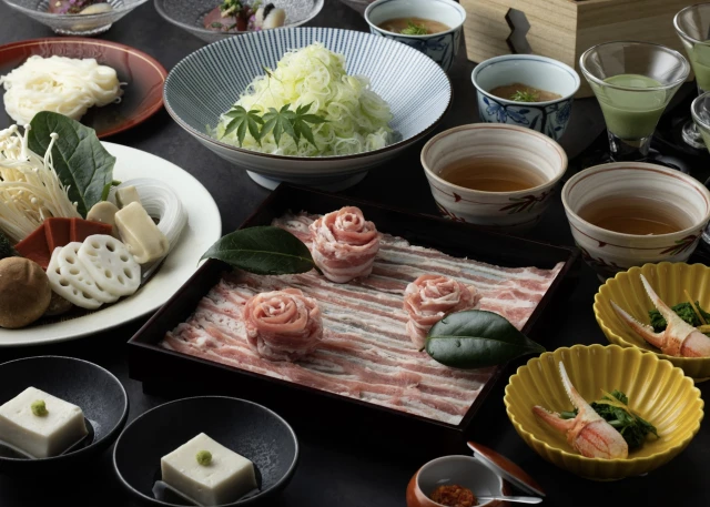 こだわりの厳選豚肉を使用したしゃぶしゃぶ会席は、上品な旨みと繊細な味わいが際立つ逸品。都会の喧騒を離れ、心からくつろげる極上のひとときをお過ごしください。