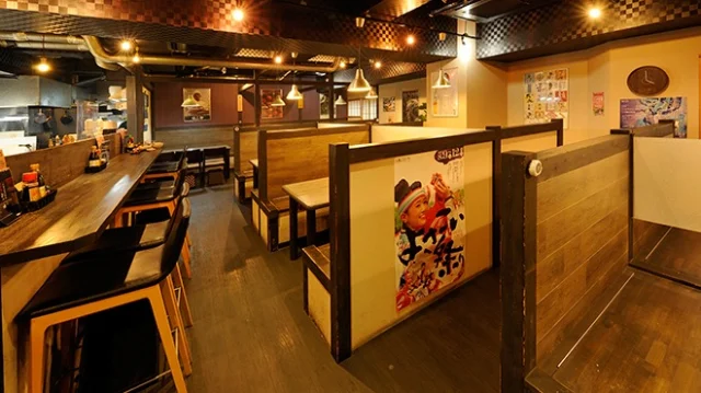 落ち着きのある、和の雰囲気が魅力的な店内には出来立ての温度感やライブ感を目の前で体験できるカウンター席の他、ゆったりと寛げるテーブル席を完備。デートやご家族、友人との集まりなど幅広いシーンでご利用いただけます。