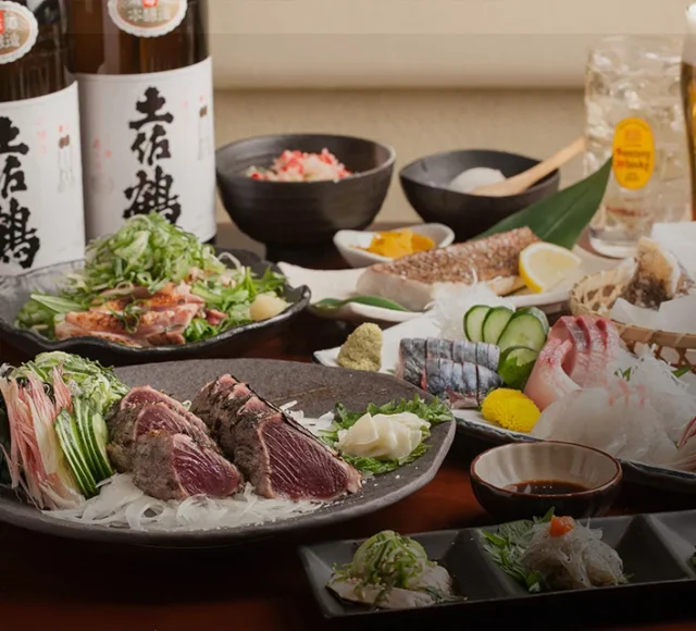 【アニバーサリーディナーin大阪(京橋)】土佐名物のカツオ・はちきん地鶏含む全9品のわら焼きフルコース★2時間飲み放題付き