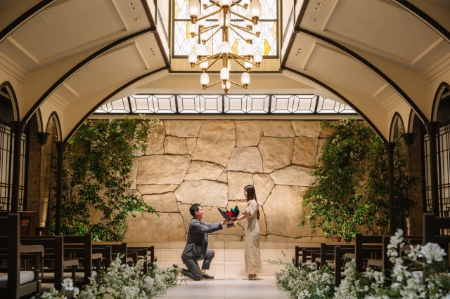 【Anny限定★感動溢れるチャペル貸切プロポーズプラン】プロによる写真撮影付き★400年の歴史ある料亭河文とNYでミシュランを獲得したシェフの技が織りなす至高のフルコース+メッセージ付きデザートプレート★12本のバラの花束&乾杯スパークリングワイン&専属プランナーがサポート