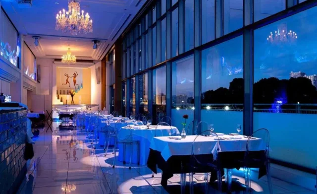 海の中を感じさせるエントランスと、高さ5メートルのバカラ製シャンデリアが織りなすラグジュアリーな空間が、訪れる人々を非日常の世界へと誘います。クラシックに縛られない創作フランス料理と、光と音の見事な演出が、特別な日を一層輝かせることでしょう。