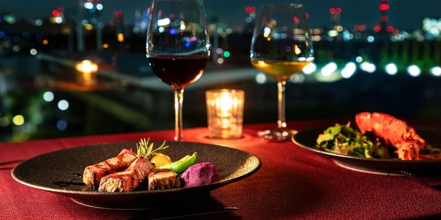 【窓際席確約★プロポーズディナープラン】国産牛ステーキ含む贅沢ディナー全5皿+乾杯スパークリング+メッセージ付きプレート★ホテルアラマンダ青山の夜景で彩るロマンティックなひととき