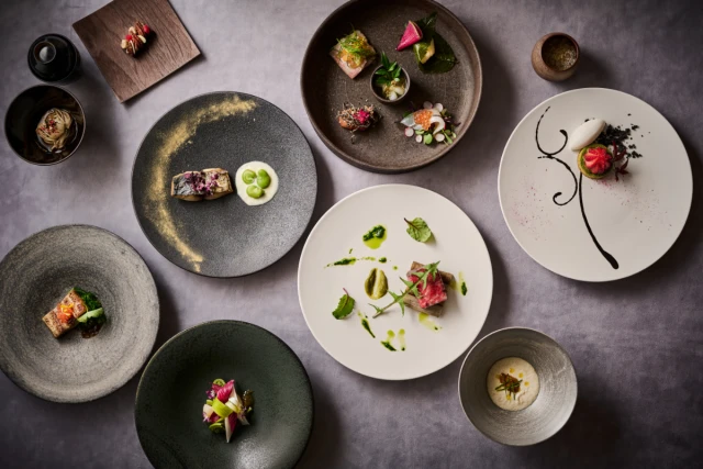 高宮駅から徒歩5分とアクセス抜群な立地に店を構える「高宮庭園茶寮」は、九州の自然の恵みを伝統と革新を融合させた新感覚の和食やフレンチでお楽しみいただける人気レストランです。