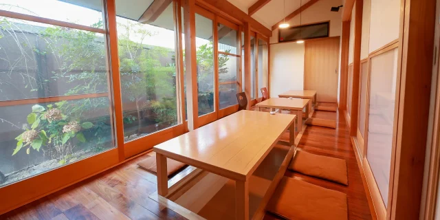 木の温もりに包まれた、落ち着きのある空間でゆったりと