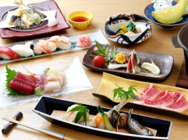 のれんをくぐると、静かに広がる上質な和の空間。「はるた」は、旬の食材を活かした寿司や海鮮料理を楽しめる隠れ家的な一軒。職人の技が光る懐石料理から、一品料理まで多彩なメニューが揃い、日本酒やワインとの相性も抜群です。木の温もりを感じる落ち着いた空間には、開放的なカウンター席や広々としたお座敷を完備。お座敷は個室席としての利用が可能です。美食とともに、心安らぐ時間をお過ごしください。