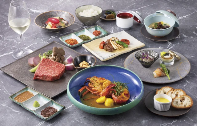 使用する食材は、料理長が自ら厳選したものばかり。旬の食材や鮮魚、銘柄黒毛和牛などの豪華食材を、熟練シェフが目の前で調理・サービスいたします。