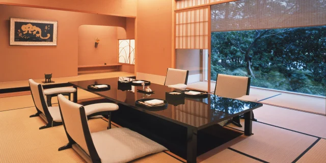 浦安ブライトンホテル東京ベイ内の「京懐石 螢」では、四季折々の風情を感じながら、本格的な京懐石料理を堪能できます。数寄屋造りの落ち着いた店内は、心地よい静寂と洗練された和の空間。