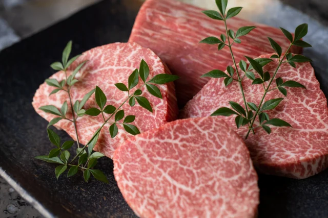 ここでは、料理長自ら厳選した九州産A5ランクの和牛や国産の伊勢海老、鮑などのお祝いシーンにふさわしい豪華食材を堪能することが出来ます。食材やお客様の要望に合わせた焼き加減で提供され、一口ごとに口の中で広がる旨味は絶品です。