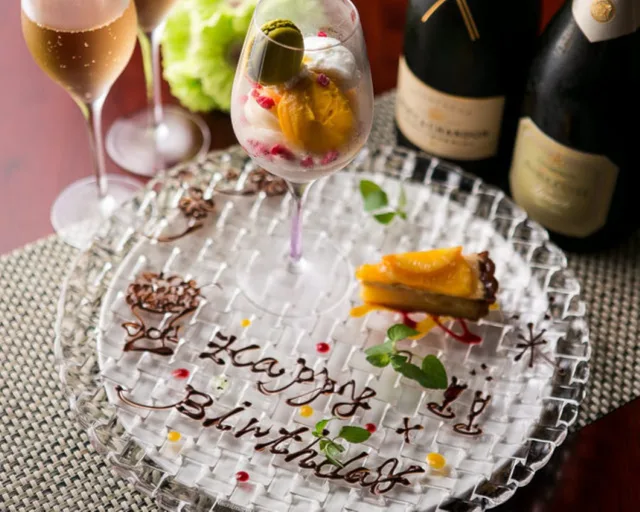 誕生日サプライズ鉄板焼結婚記念日・記念日メッセージプレート付き個室フレンチ女子会還暦古希デート米寿長寿プロポーズ乾杯ドリンク付き