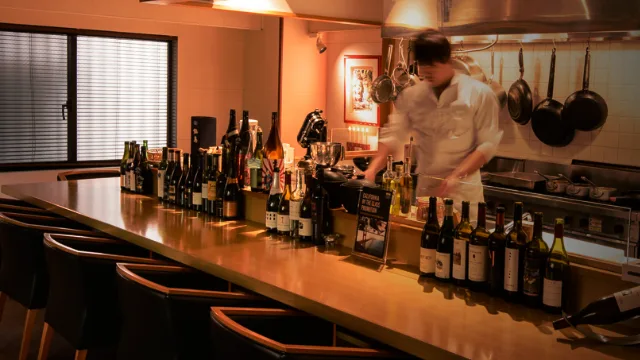フランス各地の三ツ星レストランで腕を磨いたシェフが、経験とセンスを生かした創作和食をオープンキッチンで振舞います。