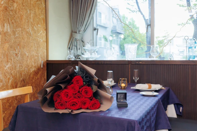 【結婚相談所にて成婚されたカップルさん限定!バラ12本付きプラン】個室確約!!チャペル貸切+チャペルでの写真撮影+フレンチコース+オーダーメイドのデザートプレート★プロポーズプランナーの事前打ち合わせ付き!★天満橋の式場併設レストランで記憶に残るプロポーズを★【プロポーズ丸投げプラン!】