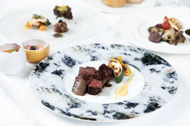 「銀座あしべ」は、名古屋駅近辺で熟成肉の鉄板焼きを楽しめる隠れ家ダイニング。50日間熟成させた旨味を極めた黒毛和牛や、新鮮な魚介の創作料理が堪能できます。シックでモダンな空間には、カウンターや2名から利用できる個室、VIPルームなど多彩なお席をご用意。厳選ワインやスパークリングとともに、記念日やお祝い、デートまで幅広いシーンを優雅に演出します。