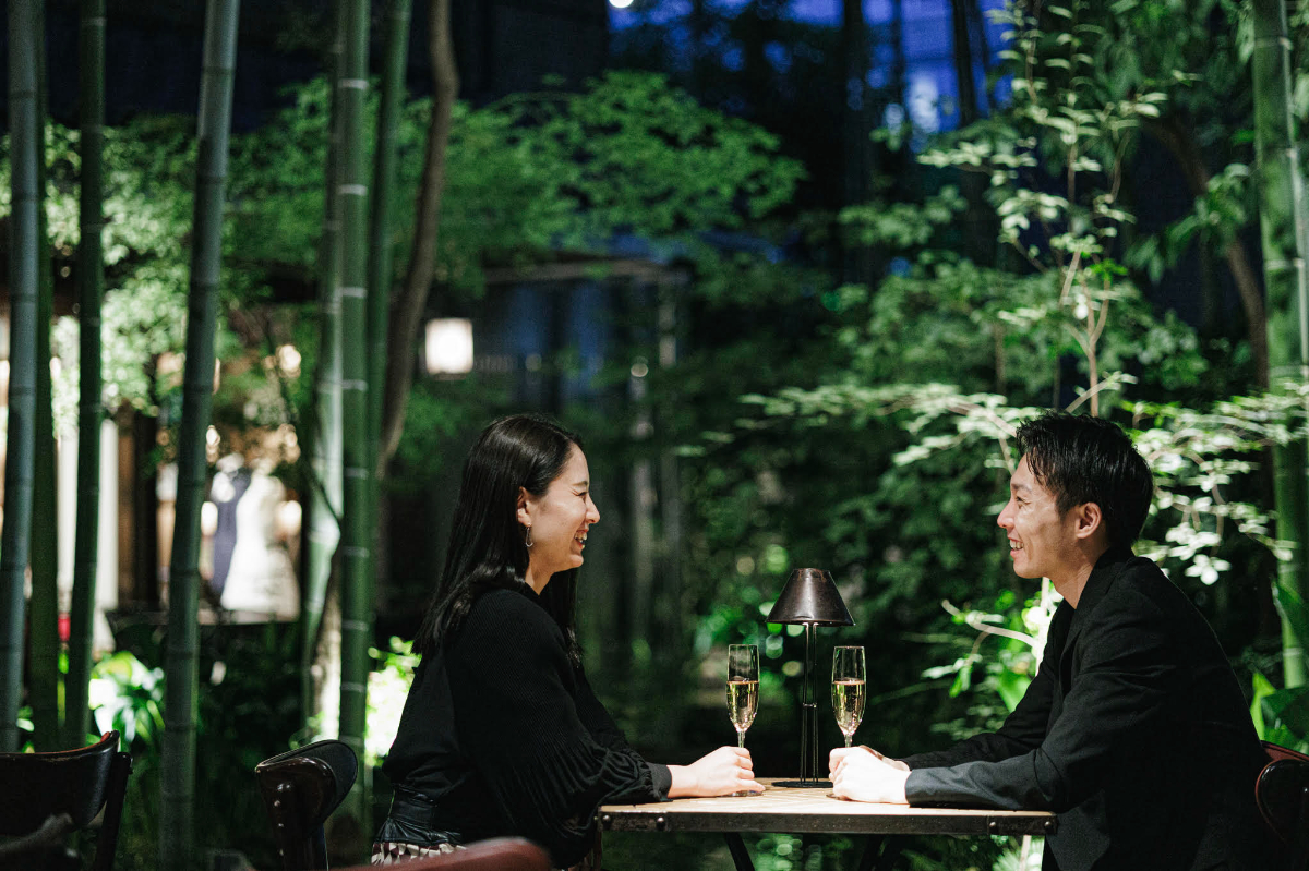 竹林に囲まれた静かなロケーションに佇む「フォーチュンガーデン京都」は、フランス料理のフレンチ・ビストロです。建築家・武田五一氏が手掛けた、過去と現在が見事に融合したモダン建築は、クラシカルな雰囲気が漂います。店内は、パリのビストロをイメージした装飾で彩られ、お祝いシーンにふさわしい優雅な時間をお楽しみいただける空間が広がっています。こだわり抜いた旬の食材を使用したフレンチ料理は、素材の本来の旨味を活かした繊細な味わいが特徴です。また、ナチュラルワインも豊富に取り揃えており、お料理との最高のマリアージュをご堪能いただけます。