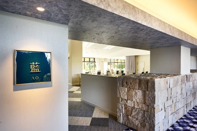 紀伊半島の南端、熊野の海と風が交わる地に佇む「花いろどりの宿 花游」。館内1階のレストラン「藍 AO」は、黒潮の海と爽やかなガーデンをモチーフに、海の色と光を映したモダンな空間が広がります。落ち着いた藍を基調とした店内からは庭園を望むことができ、和の趣と洗練されたデザインが調和。自然と調和する美しい空間で、ここでしか味わえない特別なひとときをお届けします。