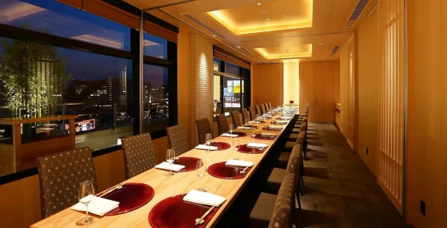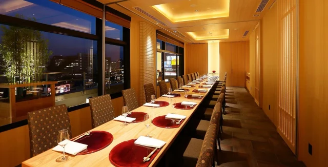 【Anny限定・最大24名様★夜景を望む個室確約 / 大人数のお祝いディナープラン】賀寿祝いや歓送迎会にもおすすめ★料理長厳選〜季節の厳選食材が織りなす懐石料理+乾杯ドリンク〜櫛田神社前駅徒歩5分