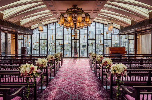 優美な内装と歴史を感じる重厚な雰囲気が、特別なお祝いシーンをより一層華やかに彩ります。
