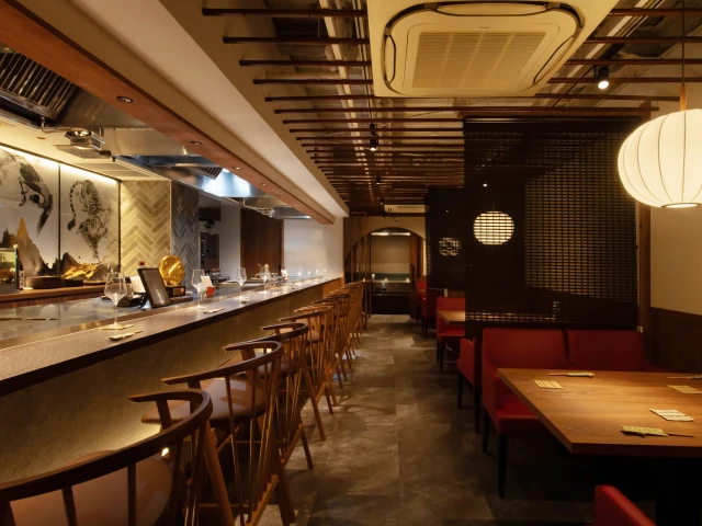 烏丸駅から徒歩3分、「神戸牛鉄板ステーキ 沙耶香」は、和の雰囲気漂う空間で最高級A5ランク神戸牛を楽しめる鉄板焼き専門店です。店内は上質ながらも肩ひじ張らず、目の前の鉄板で焼き上げるライブ感あふれる中、ステーキを堪能できます。一頭買いだからこそ味わえる6種の部位や、伊勢海老などの旬の魚介類を贅沢に調理した料理が特別なひとときを彩ります。大切な記念日にぜひご利用ください。