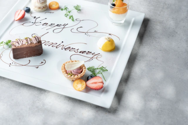 乾杯ドリンクと感謝の気持ちを込めた特別なデザートで記憶に残るアニバーサリーを