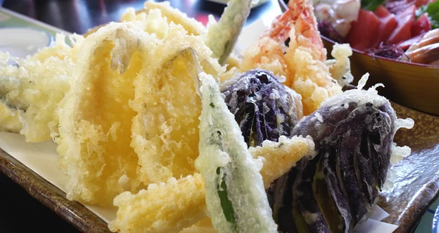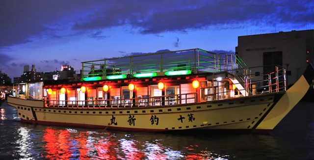 水上からの眺めは地上とは異なる静けさと美しさがあり、春は桜咲く花見クルーズ、夏は大迫力の花火大会を船上で楽しめます。名物の天ぷらは、特大エビや新鮮なアナゴを熟練の船頭が揚げたてで提供。塩や天つゆでお好みの味を堪能できます。さらに、刺身船盛や伊勢エビ、鮑のお造りなども用意。