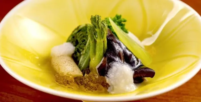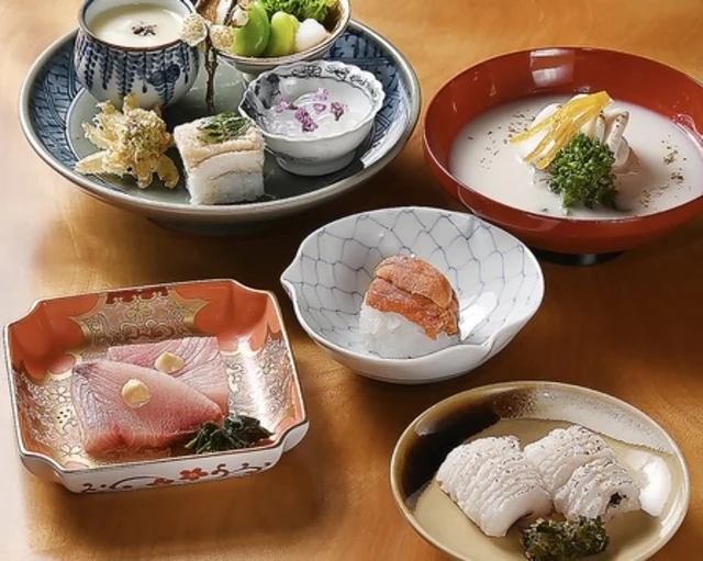 お食事には玄界灘で獲れた新鮮な魚介や、契約農家から届く野菜・米など、店主自ら目利きした厳選食材を使用。職人の技と感性が光る料理は、素材本来の滋味を活かしながら、一品一品に繊細な美しさと深い味わいを感じていただけます。